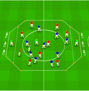 Er zijn twee teams van negen spelers.Er zijn vier neutrale spelers, twee keepers aan de kopse kanten en twee middenvelders in de ...