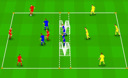 DoelVerbeteren van het uitspelen van het overtalVerbeteren van het verdedigen in ondertalOrganisatieEen veld van ongeveer 18 bij 10 meter, verdeeld in 2 vakken van 8 bij 10 meter en een tussenstrook12 spelers per organisatie8 pylonnen4 ...
