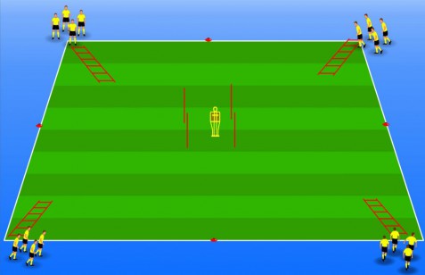 iedere groep doet de loopvormen in de loopladder en loopt dan door elkaar heen naar een andere hoek ...