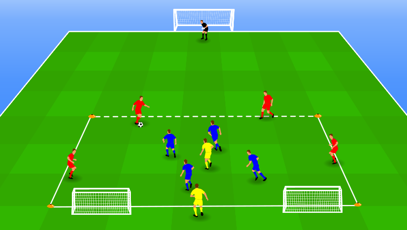 - in de rechthoek speelt het rode team op balbezit
