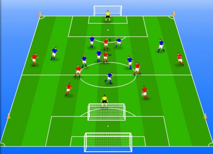 oefening begint steeds bij de keeper op de zestienmeterlijn (aanvankelijk ook bij ingooi/...