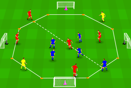 een achthoekig veld met een lengte en breedte van 20 meter12 spelers10 pylonen4 ...