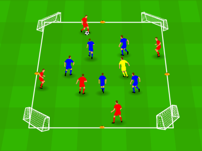 11 spelers4 pylonen4 kleine doeltjesVoldoende hesjesVoldoende ballen