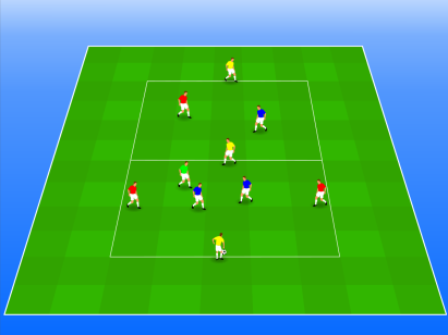 Er zijn drie teams van drie.Er is een neutrale speler (...