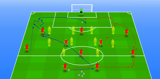 In deze trainingsvorm wordt er gewerkt om de basisprincipes van de speelwijze tegen PSV te trainen en verder in te slijpen. De basisploeg krijgt vier verschillende opdrachten/ variaties om uit ...