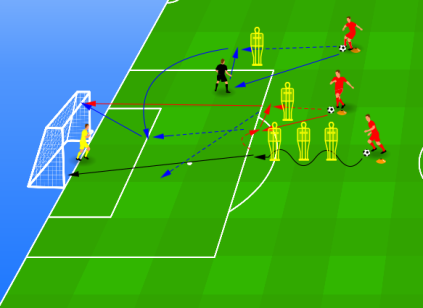 5 mannequinsminimaal 6 spelers (dubbele bezetting) en 1 keeper per organisatie1 groot doelvoldoende ballen