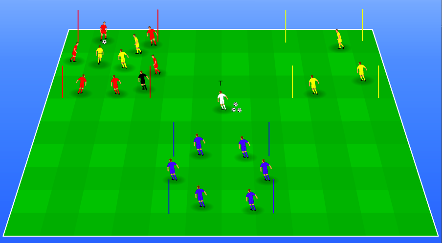 - als dat gebeurt, zetten de andere 3 gele spelers druk