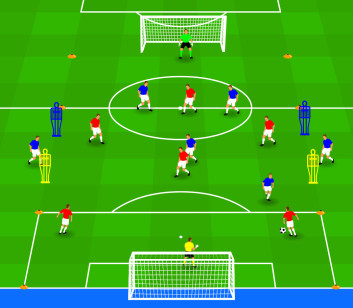 • Rood speelt 6+1 : 4+1 richting het grote doel over de middenlijn.