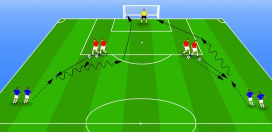 het verbeteren van de passeerbewegingen richting het doel, met een tegenstander vóór je