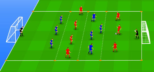 een veld van ongeveer 40 bij 50 meter10 pylonen2 grote goals14 spelers en 2 keepers14 hesjesvoldoende ...