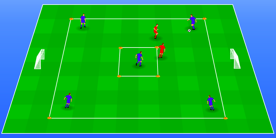 - rood kan scoren na balverovering op 1 van de 2 kleine doeltjes naast het veld