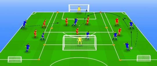 het creëren van een overtal op de vleugels door middel van een lopende derde man