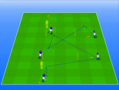 Bij de eerste variant dribbelt de centrale verdediger in en
