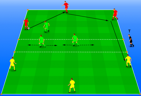 rechthoek, onderverdeeld in 3 vakken9 spelers, verdeeld ...
